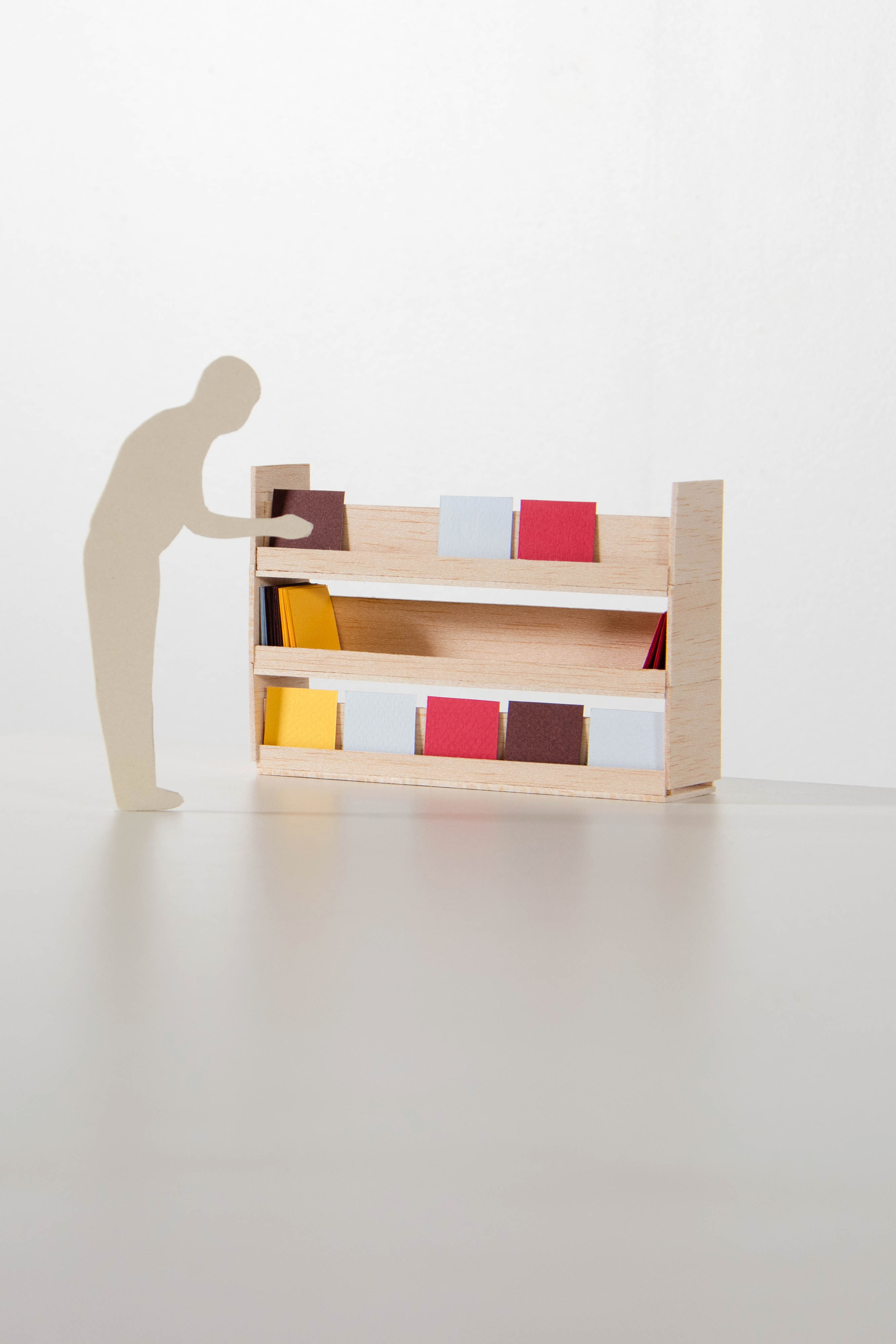Modular shelving system designed for visual artist Noémie Pilo in 2024 in order for her to display a set of volumes and experiments. Single units working indepedently as benches can be seamlessly connected to turn it into shelves. The shelves are assembled upside down, starting from the top then flipping it over once assembled.